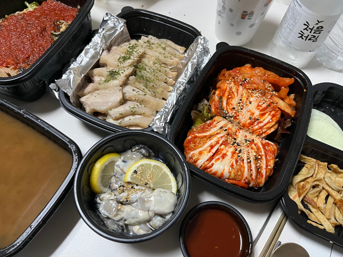 그래서 보쌈이랑 막국수 거기에 굴 추가를