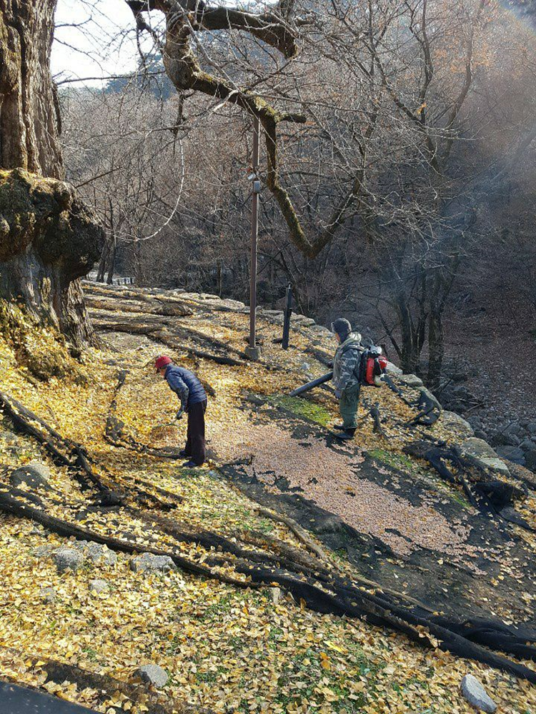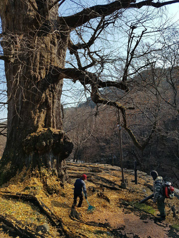 가까이서 보니 은행잎 치우고 계셨다
